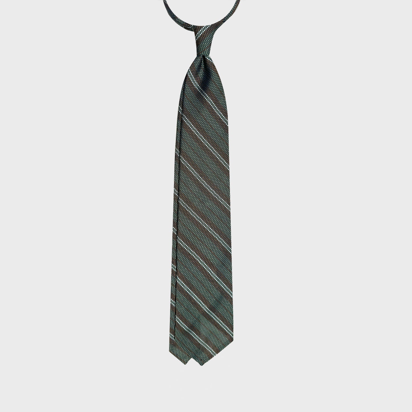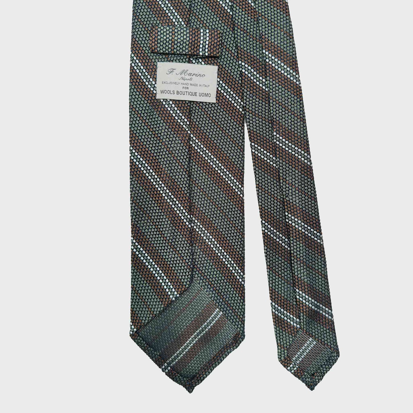F.Marino Multi Striped Silk Tie Grenadine Small Gauze Army Green