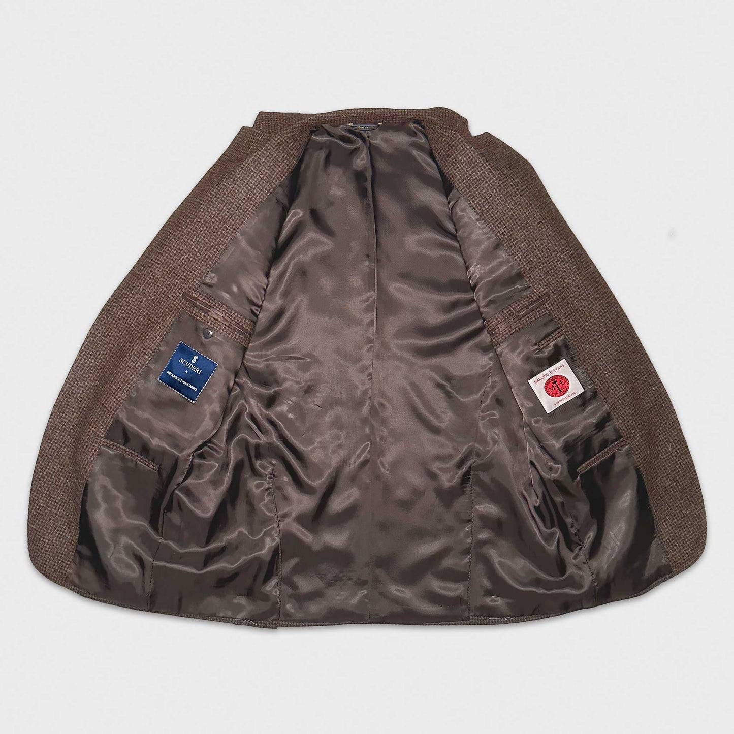 Refined men's jacket Prince of Wales brown tones, the fabric for this tailoring jacket was selected by Wools Boutique Uomo, wool 380gr from the Marling&Evans woolen mill, ideal for wearing from the first chill of autumn until the last days of winter. The tailoring was handled by the Scuderi tailoring factory in Italy. Very flexible for tailoring adjustments, the waist can be widened up to four centimeters and the sleeves shortened because the buttonholes are real but not cut. It's a timeless classic jacket perfect for any professional and casual context, easy to combine with many shirts and handmade ties.