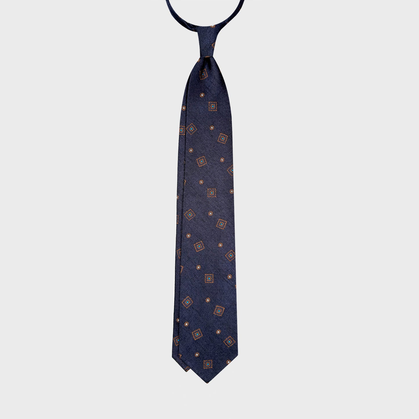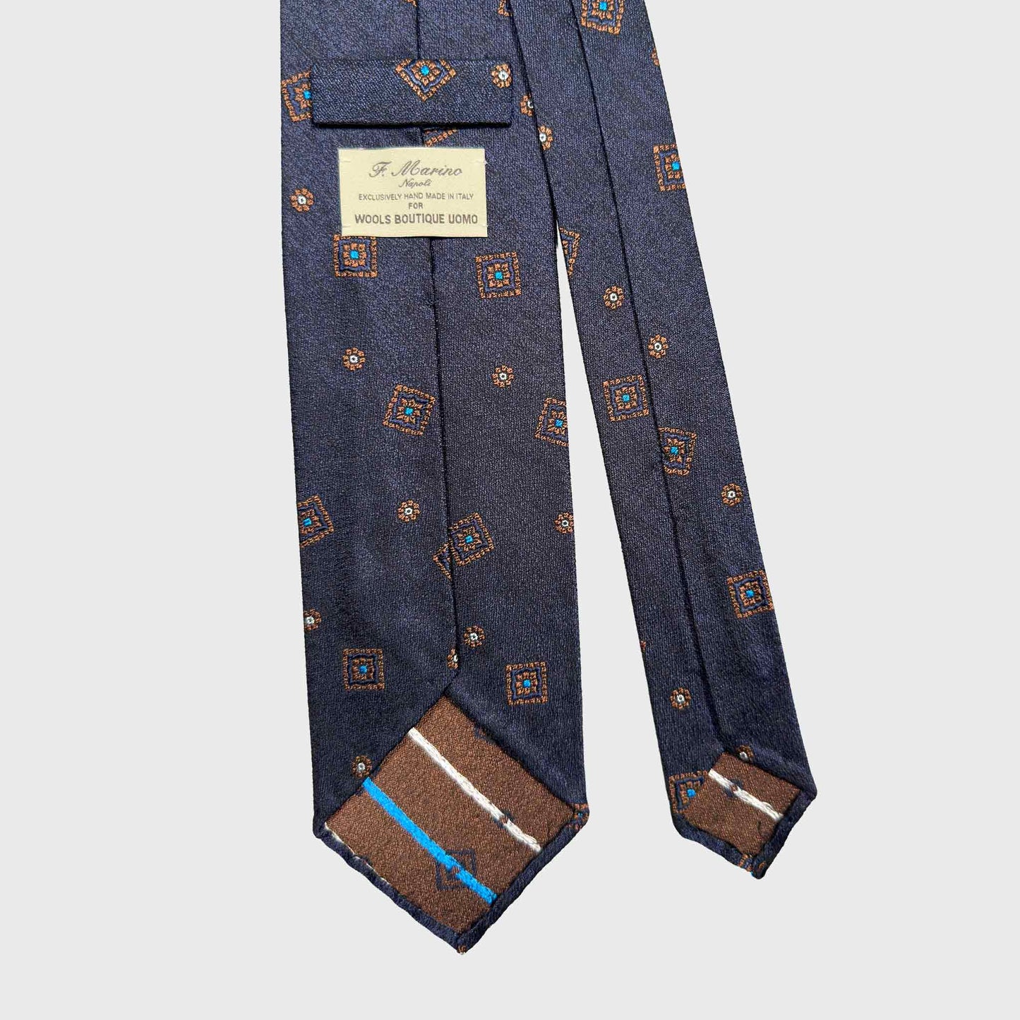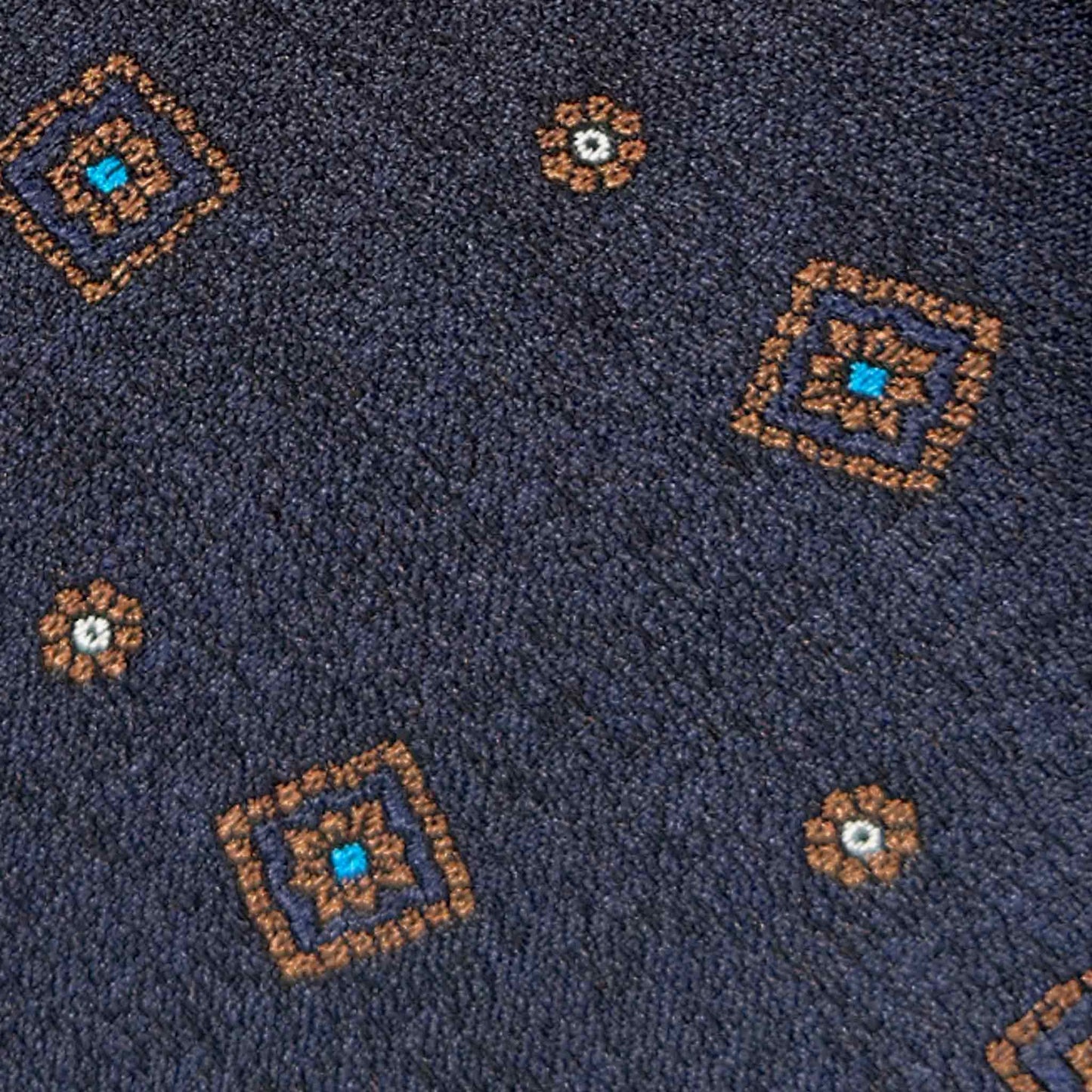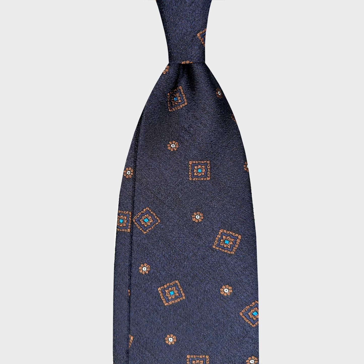 F.Marino Flamed Silk Tie Medallions Pattern Navy Blue