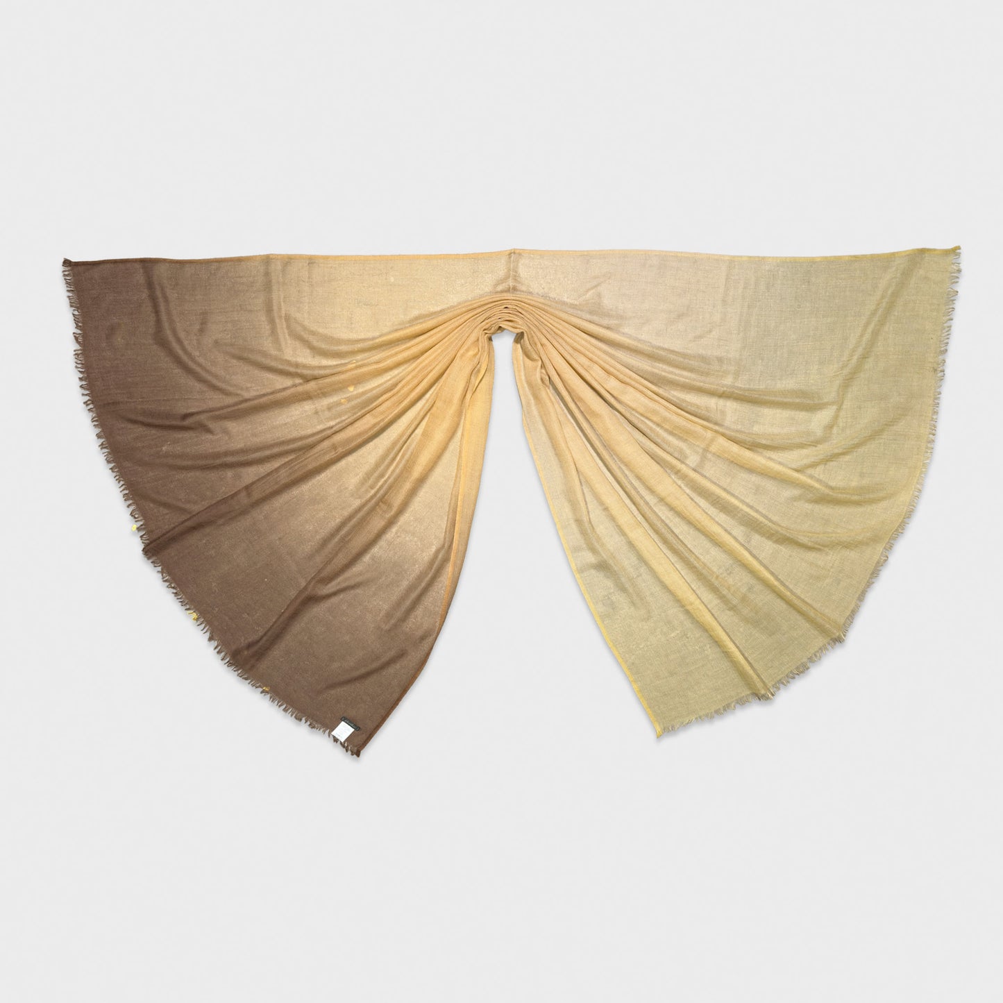 This Faliero Sarti scarf explores colour through a refined gradient transition, moving elegantly from deep brown to warm golden yellow.