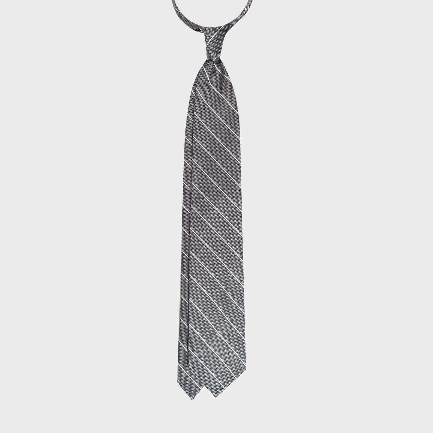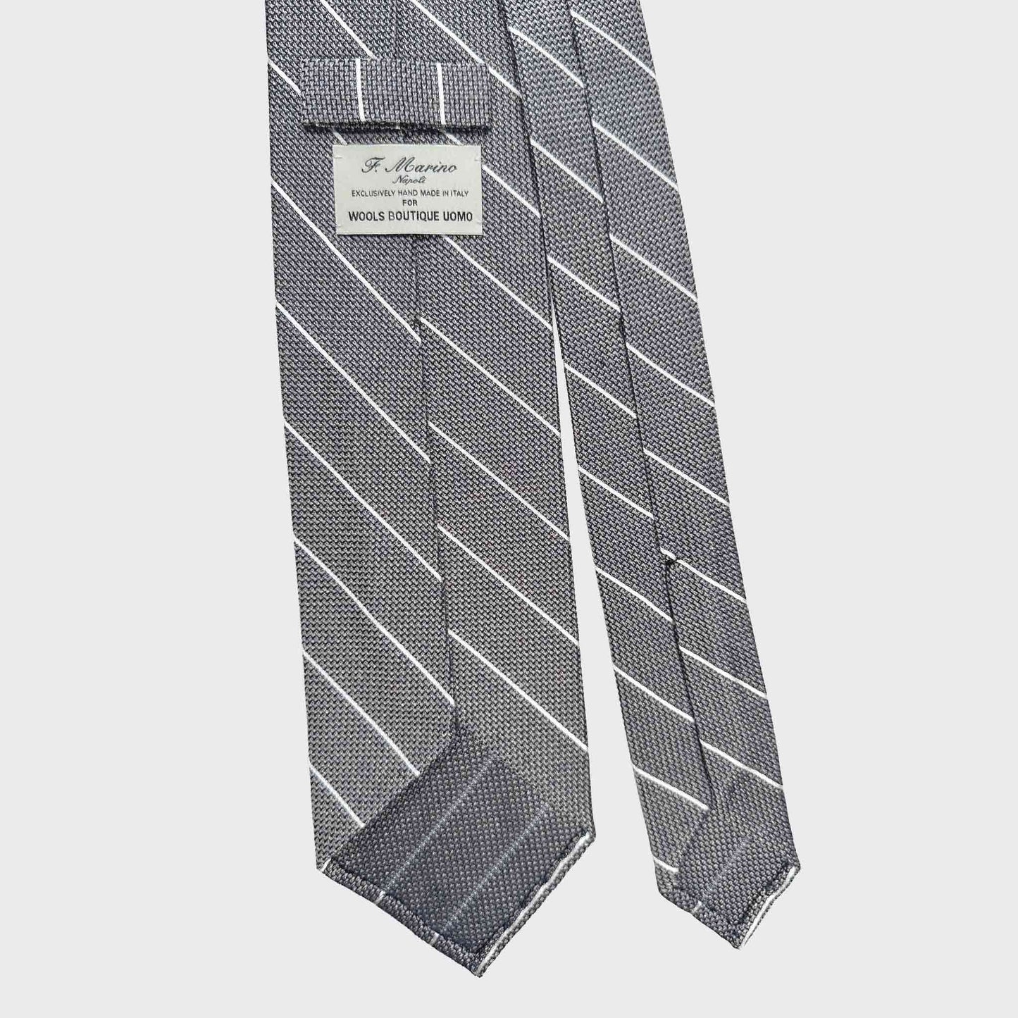 F.Marino Grenadine Silk Regimental Tie Iron Grey
