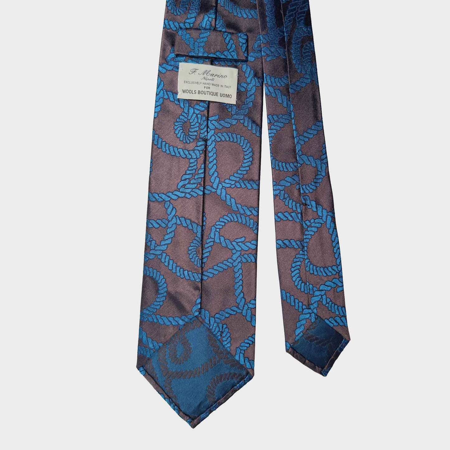 F.Marino Silk Tie Turquoise Rope Pattern Bronze