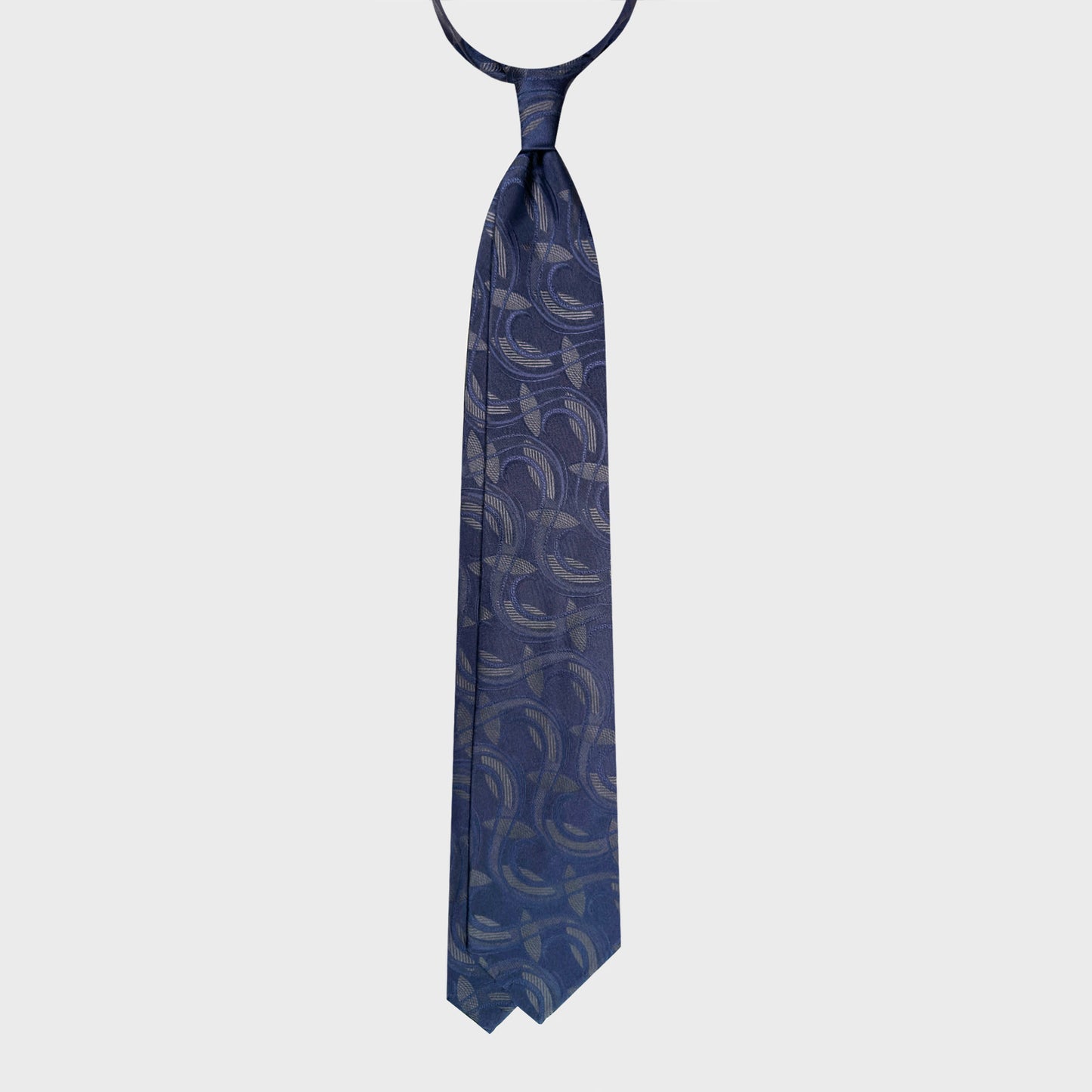 dark denim blue background with ornamental Art Nouveau motif in tone-on-tone woven silk, featuring fluid organic lines and refined textured jacquard finish